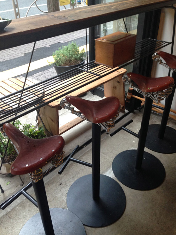 店内はとてもお洒落! よく見ると、自転車のパーツを使用したインテリアがチラホラ…スタッフさんに聞いた所、自転車店「BLUE LUG」が運営しているそう〜なるほど!